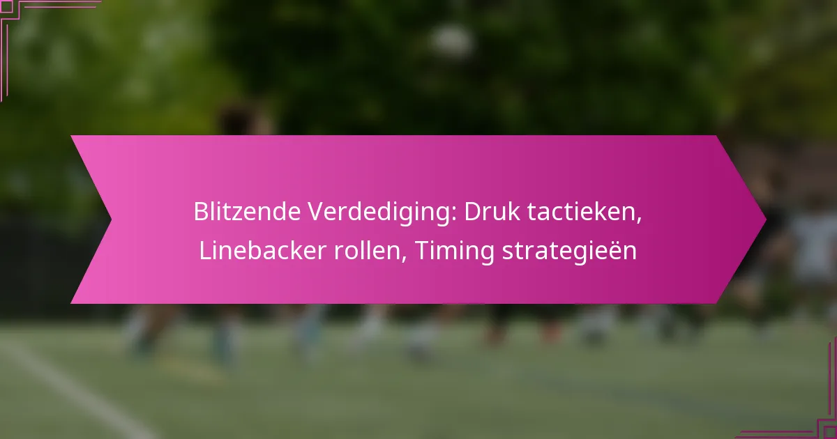 Blitzing defense in American football is een strategische benadering waarbij defensieve spelers, met name linebackers, agressief de quarterback aanvallen om offensieve plays te verstoren. Deze tactiek oefent niet alleen druk uit, maar dwingt de aanval ook om snelle beslissingen te nemen, wat de kans op fouten en turnovers vergroot. Linebackers zijn essentieel in deze strategie, omdat ze hun rush effectief moeten timen en zich moeten aanpassen aan de formatie van de aanval om hun impact te vergroten.